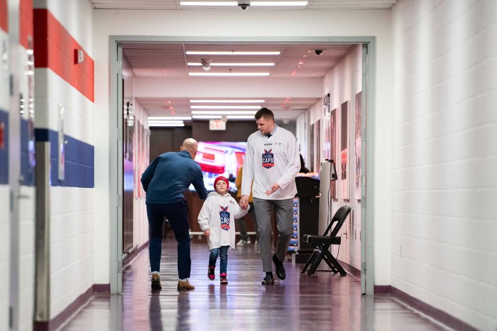 As part of the celebration, Harper received two tickets for a Caps game. However, her family had to arrive at the rink in DC very early that morning, because the game was only part of the festivities. They arrived in D.C. at 7am, and Harper walked Protas into the arena. She and Protas wore matching jerseys, and he autographed hers after they were inside. Harper toured the Caps' locker room that morning, and even had a chance to try on a Stanley Cup Championship ring! During the game, the jumbotron displayed a montage of local players meeting and escorting NHL players into the arena.